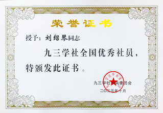 我校九三学社社员刘绍琴获评九三学社全国优秀社员称号