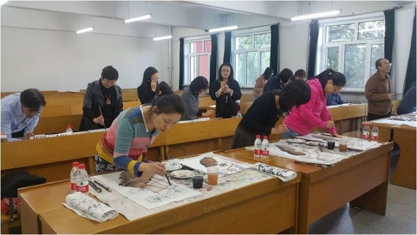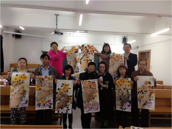 9月28日,哈工大九三学社二支社和三支社联合举办了“喜迎十一,弘扬传统文化,中国画讲座”活动,聘请了省内知名中国青年画家为大家讲解。活动分为两个环节:首先是基本知识讲授环节,由老师给大家讲授中国画历史、中国画基本技法和特点以及中国画欣赏方法等方面的知识;然后是画作创作环节,在老师的带领下,大家完成了一幅关于秋菊的国画作品。两个小时的活动虽然短暂,但是大家身体力行,每个人都亲手完成了自己的作品。社员们表示,尽管很多人是平生第一次画中国画,却居然画得如此满意。最后,本次活动在大家意犹未尽的交流中进入了尾声,活动取得了圆满的成功。