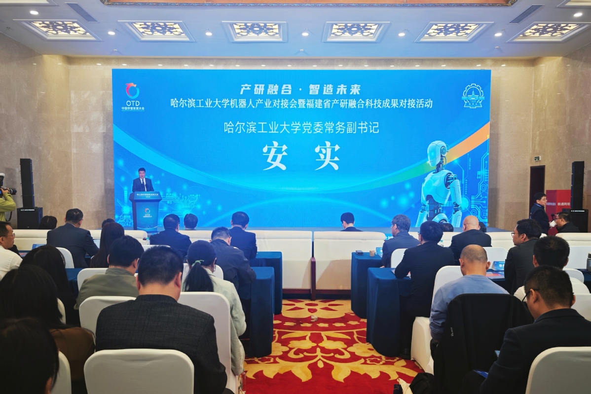 “期待校地双方以此次活动为契机,在原有的深厚合作基础上,结出更多产研融合、人才培养硕果……”12月2日,由我校和福建省创新研究院共同主办,福建省侨联、福建省科协、黑龙江省侨联支持的哈工大机器人产业对接会暨福建省产研融合科技成果对接活动举行,旨在推动机器人领域科技成果转化与产业深度融合,促进校企合作与区域创新发展。福建省科学技术厅党组书记、厅长李志忠,校党委常务副书记安实出席并致辞。黑龙江省侨联主席申建平,福州新区管委会副主任、长乐区区长张帆,福建省电子信息集团党委副书记、副董事长、总经理卞志航,福建省创新研究院党委委员、副院长张云峰,福建省侨联原一级巡视员、副主席张瑶,江苏省侨联党组成员、副主席兼秘书长张霓、厦门市科技局局长王达等出席活动。