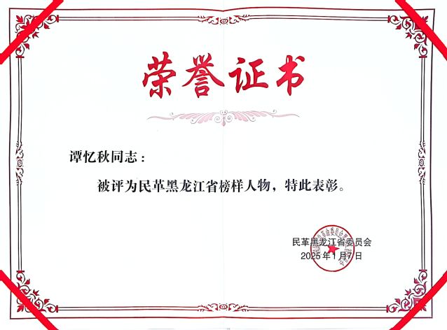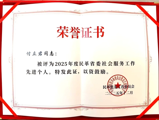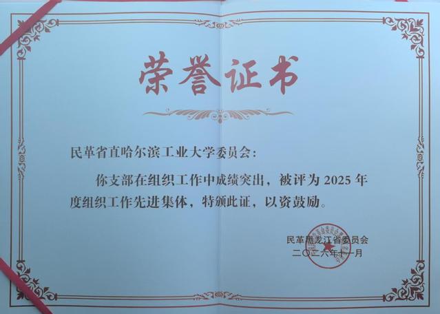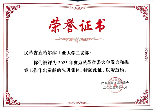 此外,本年度我校民革集体和多位个人荣获民革黑龙江省委表彰。民革哈尔滨工业大学委员会获评2025年度民革省委组织工作先进集体,民革党员谭忆秋获评民革黑龙江省榜样人物,民革党员付立君获评2025年度民革省委社会服务工作先进个人。